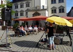 Titel wie Die Hüllen sind gefallen, der Markt strahlt im neuen Glanz oder auch Mittendrin und doch noch außen beschreiben die jetzige Situation auf dem Marktplatz. Nach jahrzehntelanger Verwahrlosung scheint das Schattendasein des Geraer Marktplatzes ein Ende zu haben. Doch was passiert in dem Gebäude hinter der aufwändig sanierten Fassade, welches die Marktostseite jetzt schmückt? Einen Blick in die Zukunft mit Erwartungen, Hoffnung und Konzepten wagt die erste Folge der neuen Sendereihe Stadtgespräche  im Geraer Bürgerfernsehen. Bürgerinnen und Bürger, die keinen Kabelanschluss für den Empfang des Offenen Kanals haben, können die interessante Gesprächsreihe auch im Internet in der Mediathek Thüringen verfolgen. Zweimal im Jahr wird es künftig um Fragen der Stadtentwicklung gehen und die Öffentlichkeit ist eingeladen, die Aufzeichnungen der Stadtgespräche auf dem Markt live mitzuerleben.