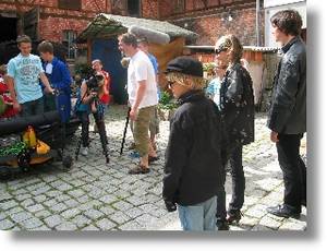 Da es in Reichenbach gar keine Autowerkstatt gibt, wurde ein Hinterhof schnell zur Autoreperatur umgewandelt. Clemenz bekam den Blaumann an und schon konnte die zweite Szene gedreht werden.
