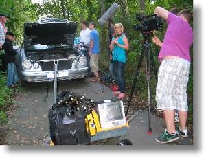Zunächst musste der Wagen auf der Flucht kaputt gehen. Das Drehteam suchte sich einen abgelegenen Feldweg für die erste Szene.